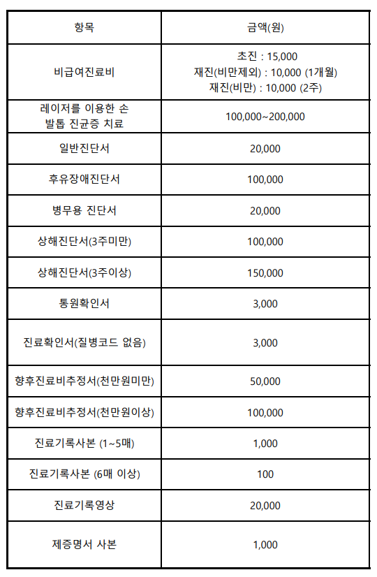 제증명수수료/ 비급여비용 고지